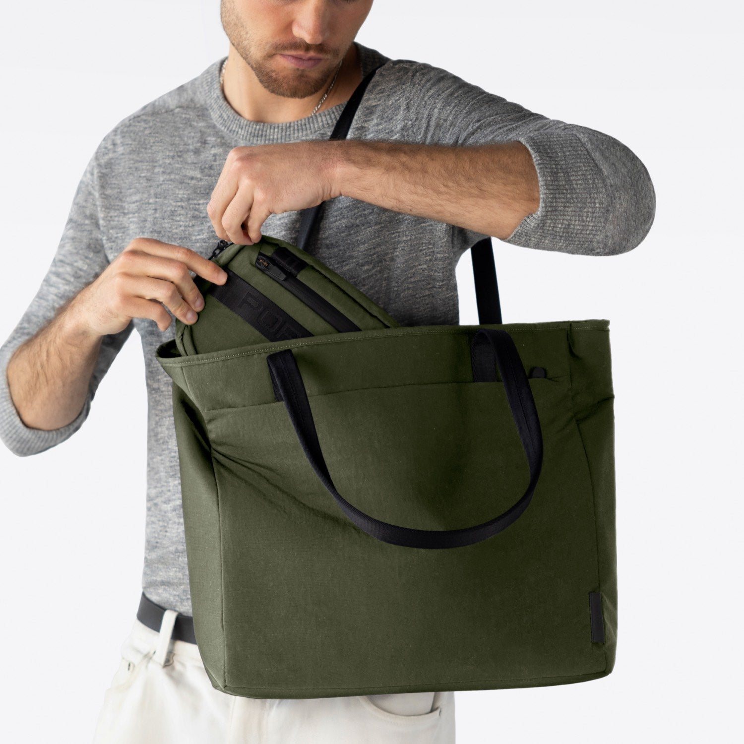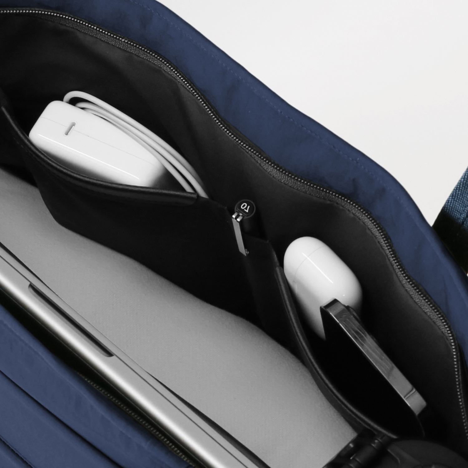 Additional zones complement the main compartment, providing quick access to smaller essentials such as your AirPods, keys, and phone.