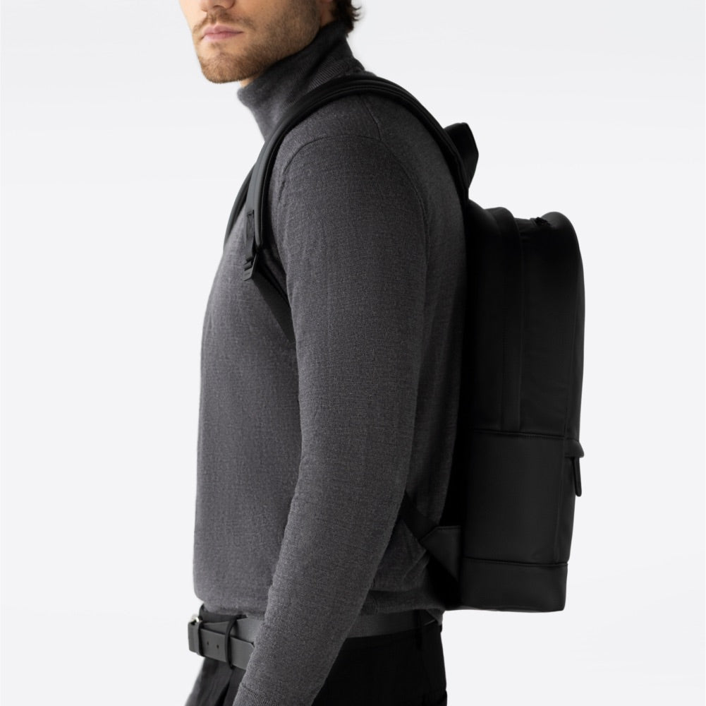 The Motus Backpack has a discreet pass-through strap for easy attachment to your luggage, making it the perfect travel companion.